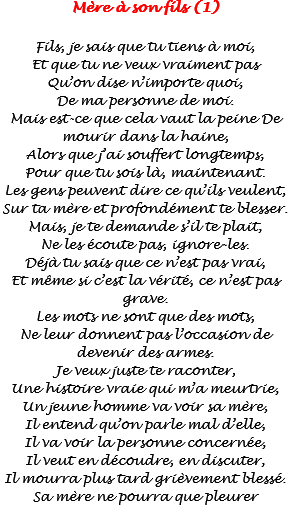 Premièrement, soyez autonomes, en général les femmes ont des bonnes idées, et s’il faut les mettre en pratique, elles n’attendront personne pour le faire. Avec l’inflation, il est bien que la pression ne soit pas que sur l’homme. Deuxièmement, si vous séparez du père de vos enfants et qu’il est un bon père, s’il vous est possible de lui laisser l’appartement, laissez-lui. Il est plus facile de reloger une mère avec ses enfants, même quand elle n’est pas autonome. C’est quand mieux pour elle si elle l’est. Troisièmement, il y a des pressions inutiles qu’on peut éviter à nos garçons. Il faut juste leur en parler et leur expliquer au plus tôt. Dagoa conclut sur ce poème « mère à son fils » qui reprend le troisième conseil.