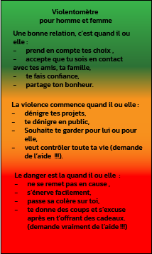 Elle pense aussi que chacun de nous peut jouer un rôle important dans la prévention et la lutte contre les violences. Oui on peut arrêter d’être INDIFFÉRENT quand une femme se fait agresser dans le train ou qu’un homme se fait taper par une femme, même si c’est sa femme. Oui, on peut être attentif aux signes d’isolement qu’un manipulateur ou une manipulatrice met en place pour prendre le contrôle sur sa victime.